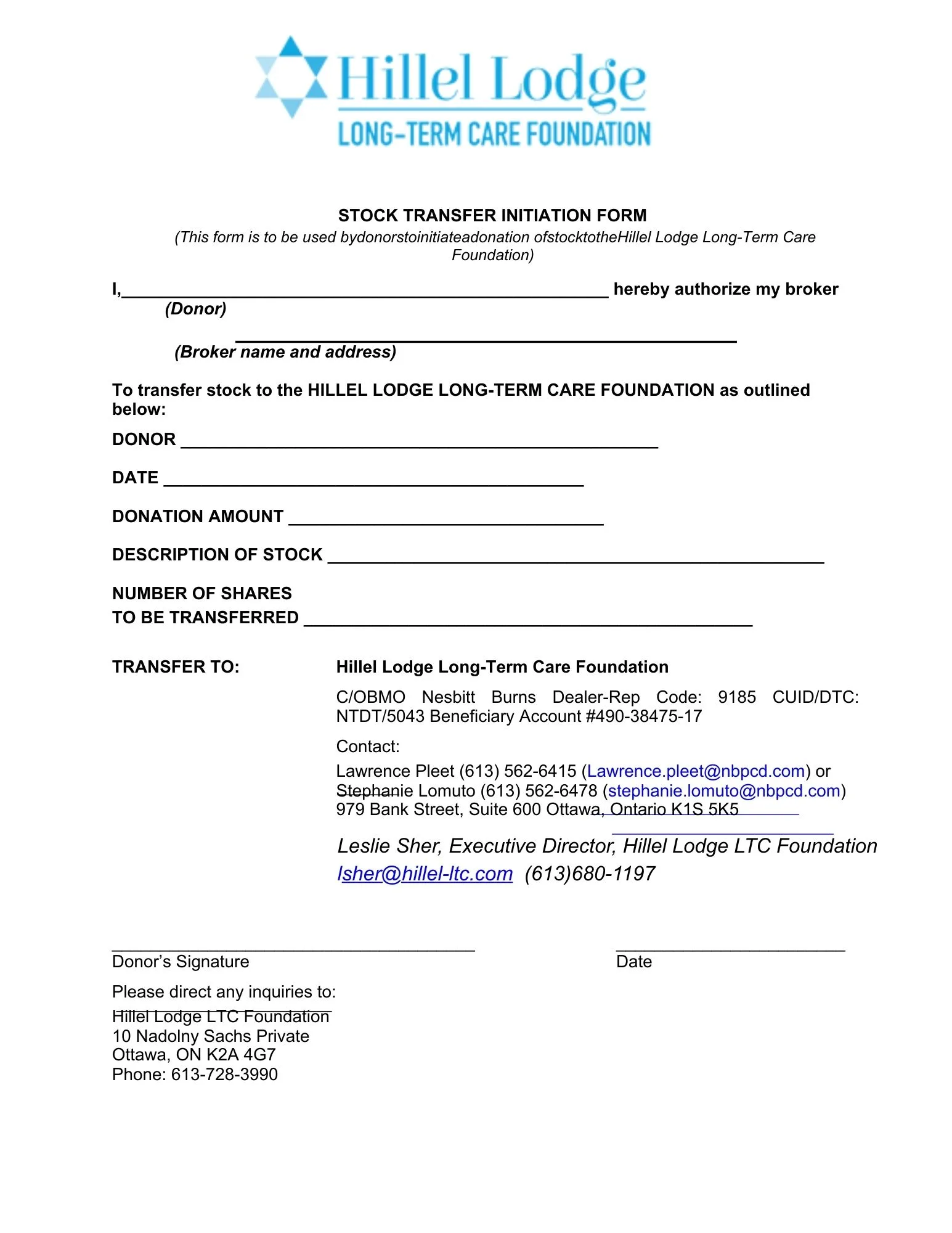 - Notify us of your gift by contacting the Foundation office at 613-728-3990